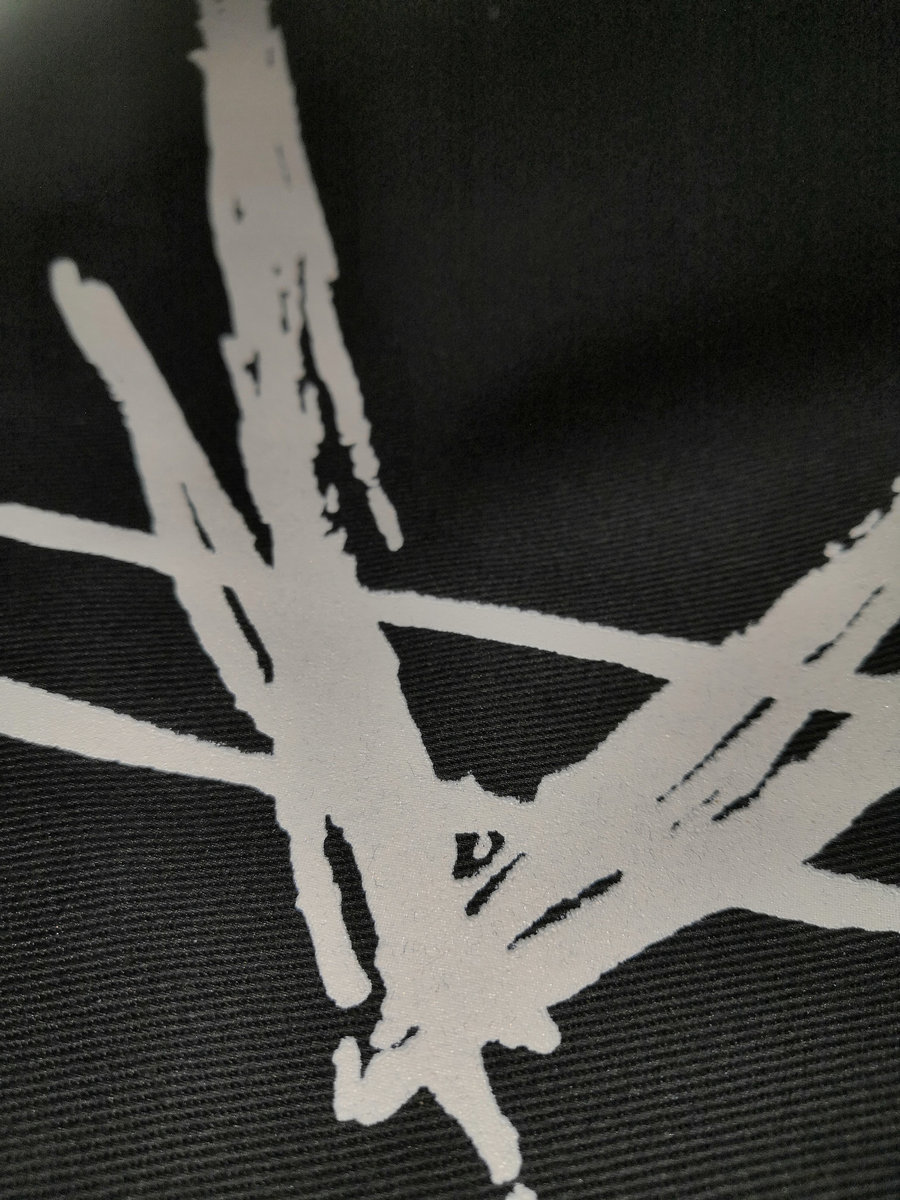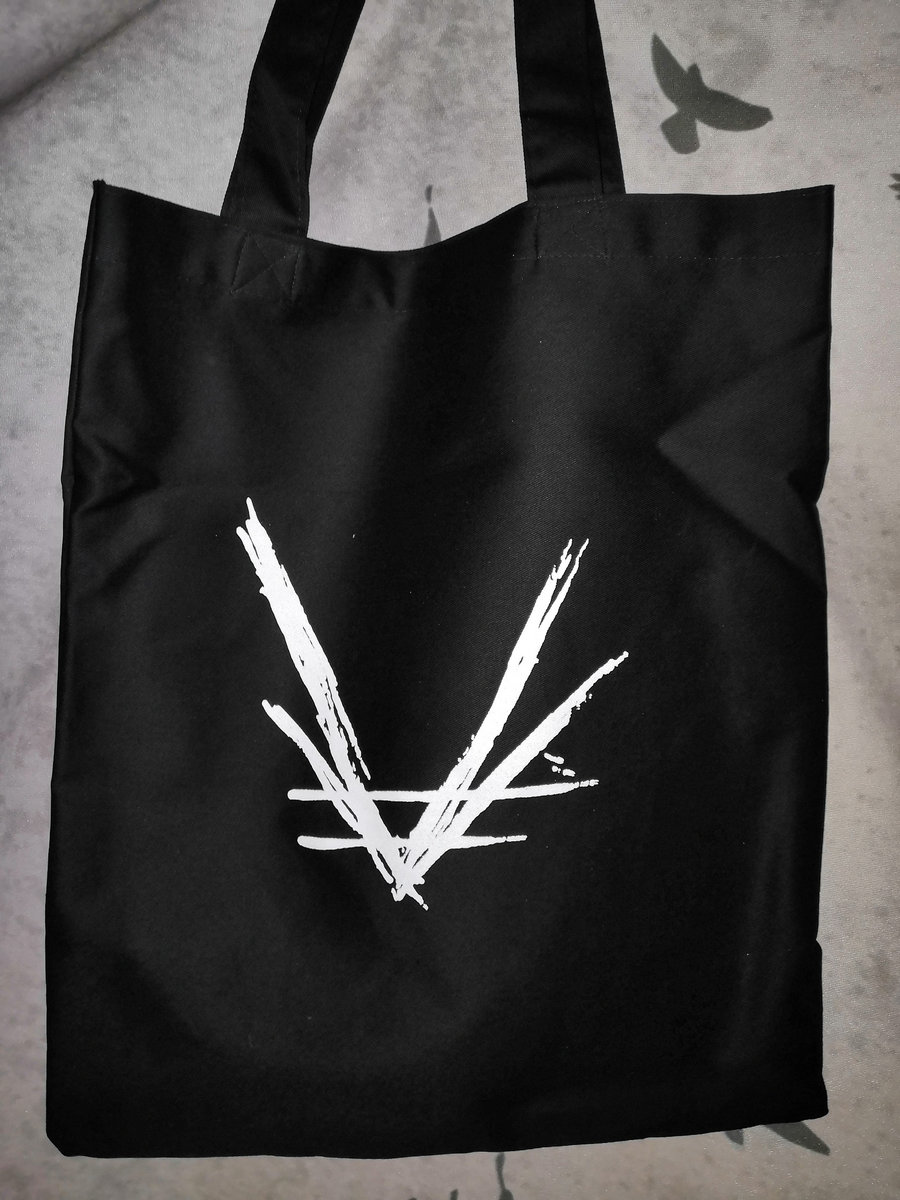 Eco Black Tote Bag with front print in one color. (White V-symbol)